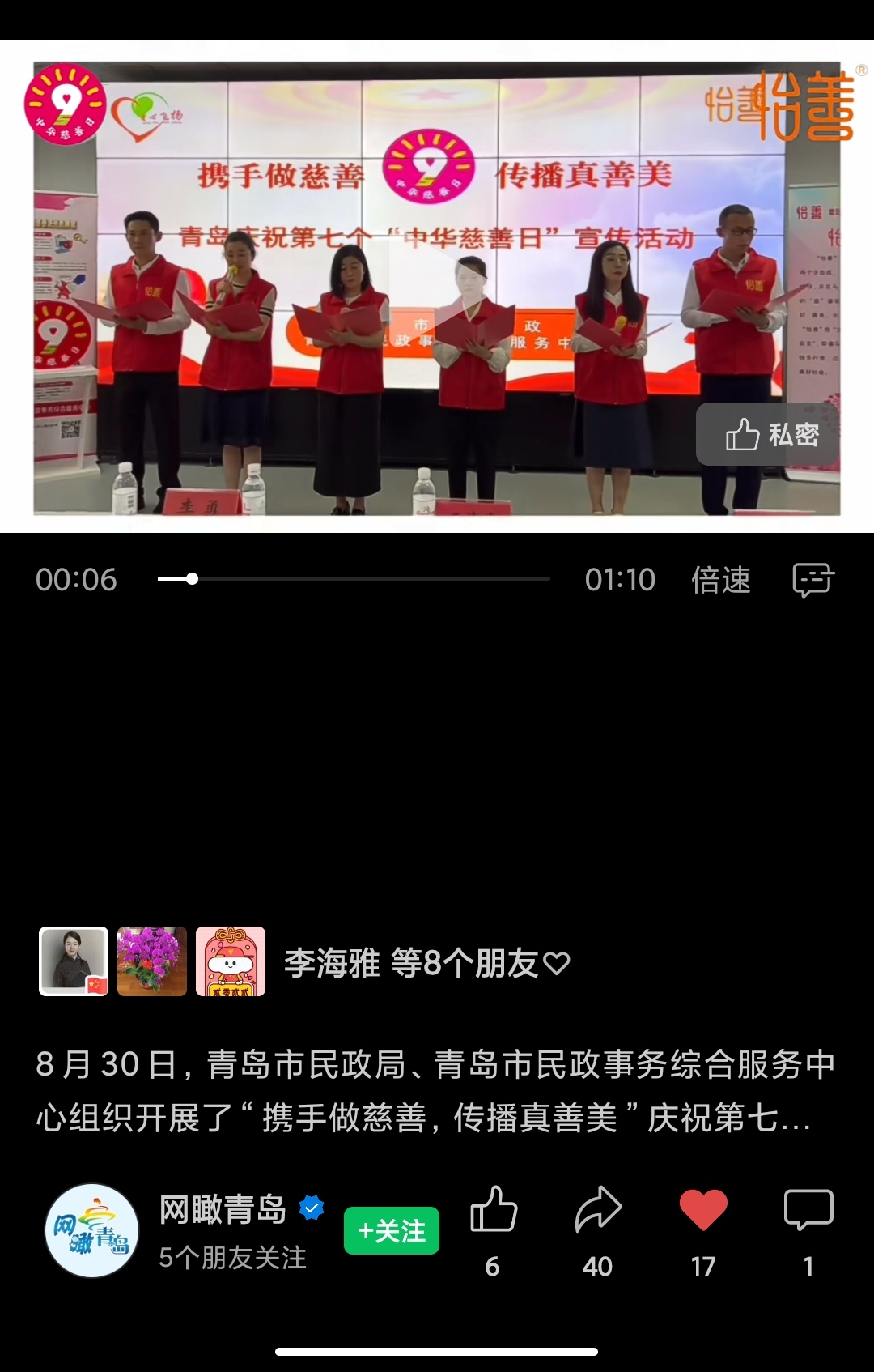 網(wǎng)瞰青島(視頻號(hào))2022-8-30:市民政局、市民政事務(wù)綜合服務(wù)中心開展慶祝第七個(gè)“中華慈善日”宣傳活動(dòng)