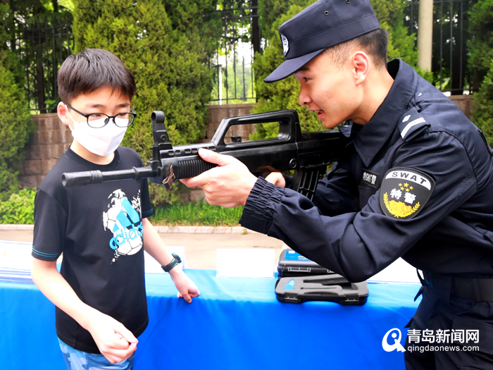 活動現場還展示了特警防暴車、防暴盾牌、轉輪手槍、微型沖鋒槍、狙擊步槍等現代化警用裝備,在講解員的介紹下,通過近距離的感受,孩子們對各種裝備發生濃厚興趣,駐足停留,久久不愿離去。
