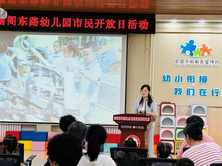 在多功能廳,李園長向市民介紹了幼兒園的辦園理念、環(huán)境改造、師幼發(fā)展、安全管理、家園共育等亮點和特色工作,并借助即墨教育的宣講視頻和幼兒園《潤養(yǎng)天性、沿趣生長》的游戲視頻,讓來訪市民對近幾年即墨教育的投入和發(fā)展,對幼兒園各項工作的開展有了進一步的了解,切身感受即墨教育和學前教育的蓬勃發(fā)展。