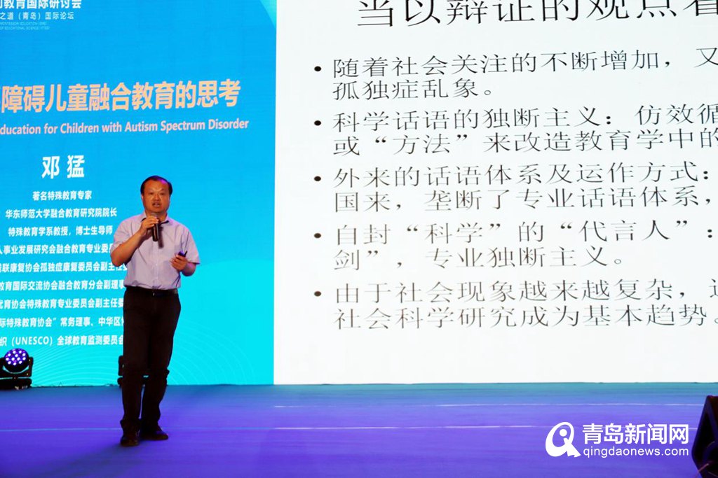 華東師范大學(xué)融合教育研究院院長、教育學(xué)部特聘教授、特殊教育學(xué)系教授、博士生導(dǎo)師鄧猛的分享《孤獨(dú)癥譜系障礙兒童融合教育的思考》在現(xiàn)場引起強(qiáng)烈反響。關(guān)于融合教育,鄧猛教授提出:“要從共性出發(fā),尊重特性。從興趣出發(fā),培養(yǎng)能力。從生活出發(fā),全面發(fā)展。從游戲出發(fā),快樂學(xué)習(xí)。從家庭出發(fā),家園協(xié)同。從社區(qū)出發(fā),社會參與。”最熟悉的、最常見的往往最有效,卻最容易為我們所忽略,兒童的社會性發(fā)展只能在社會交往中發(fā)展。