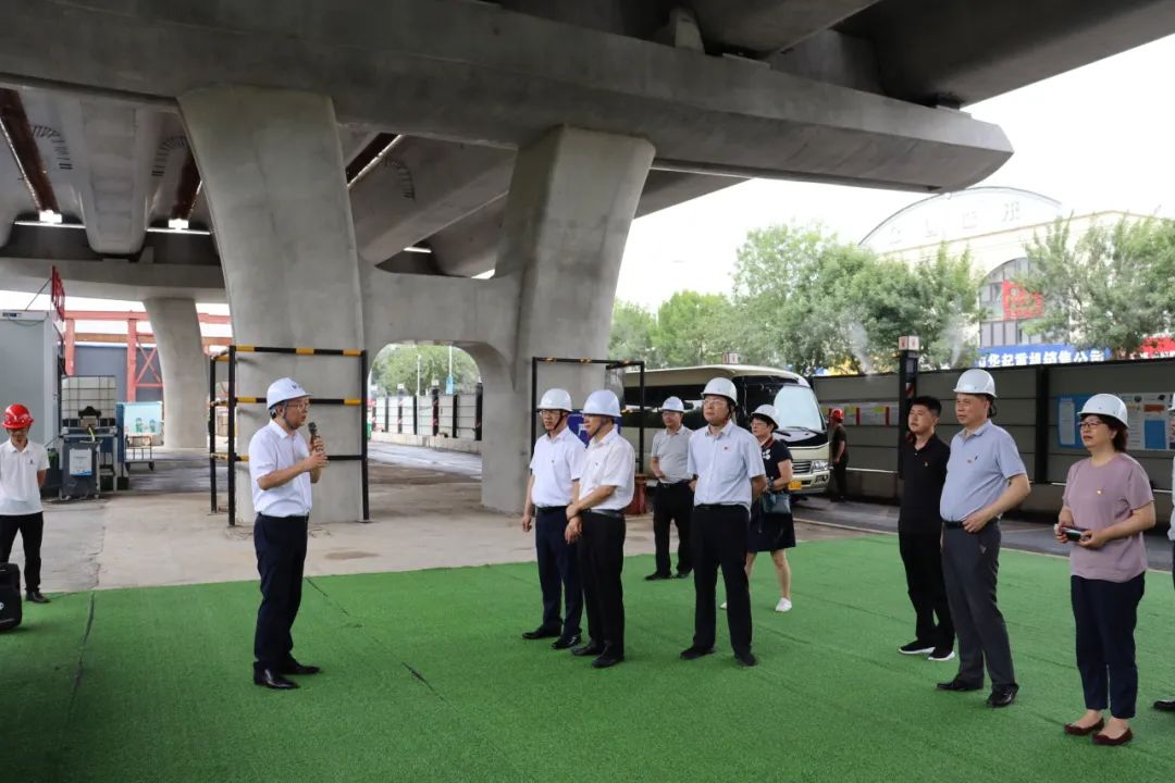 會前,大家在項目現場了解施工進度、施工難點、創新技術等,實地感受市直企業扛牢經濟責任、政治責任、社會責任,與城市同向發展、共融發展取得的成效。