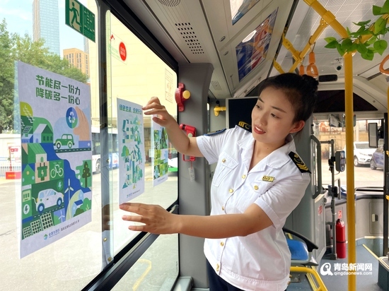 此外,志愿者們還在多條公交線路打造“綠色出行,美好生活”主題車廂。走進主題車廂內綠意盎然,“綠色出行、低碳生活”海報映入眼簾,車廂扶手處以及醒目位置均張貼“綠色出行”的標語,讓市民在乘車的過程中耳濡目染,沉浸式呼吁大家加入綠色出行,保護環境的行列。