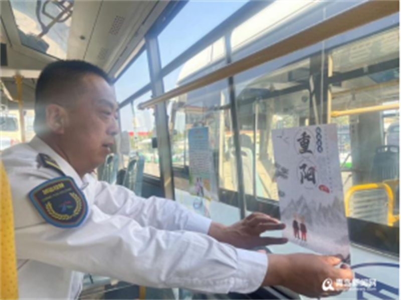 城陽巴士第六分公司935路駕駛員邵先鵬精心布置重陽節主題車廂,張貼了以重陽節的由來、民俗及典故為內容的科普卡片,營造了濃厚的節日氛圍。進入重陽時節,氣候逐漸轉涼,老年人也應格外注意身體的養生調理,邵先鵬整理出一份“老年人養生小知識”,提醒老年人要注意飲食,保持良好的生活習慣。