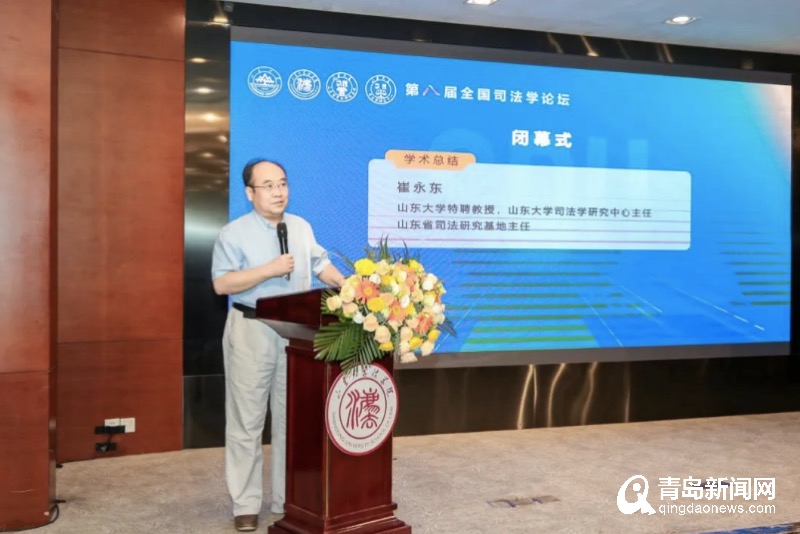 在閉幕式上,山東大學(xué)特聘教授、山東大學(xué)司法學(xué)研究中心主任、山東省司法研究基地主任崔永東圍繞著論壇的主題和子議題以及本屆論壇的主要特點(diǎn)作了精彩的學(xué)術(shù)總結(jié),指出本屆論壇具有創(chuàng)新性強(qiáng)、針對(duì)性強(qiáng)、戰(zhàn)略性強(qiáng)的特點(diǎn),并對(duì)“全面準(zhǔn)確落實(shí)司法責(zé)任制,加快建設(shè)司法公信力”的前景進(jìn)行了展望。