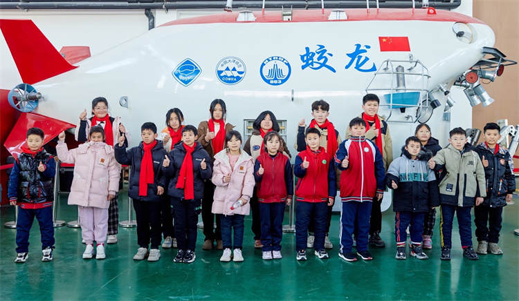 研學(xué)活動(dòng)第二站來(lái)到國(guó)家深海基地管理中心,在這里孩子們見(jiàn)到了“蛟龍”號(hào)深海載人潛艇的1:1模型,聆聽(tīng)工作人員講解深海自然及科考知識(shí)。在好奇的目光和陣陣驚嘆聲中,孩子們興奮地遨游在神秘又富饒的海底世界。