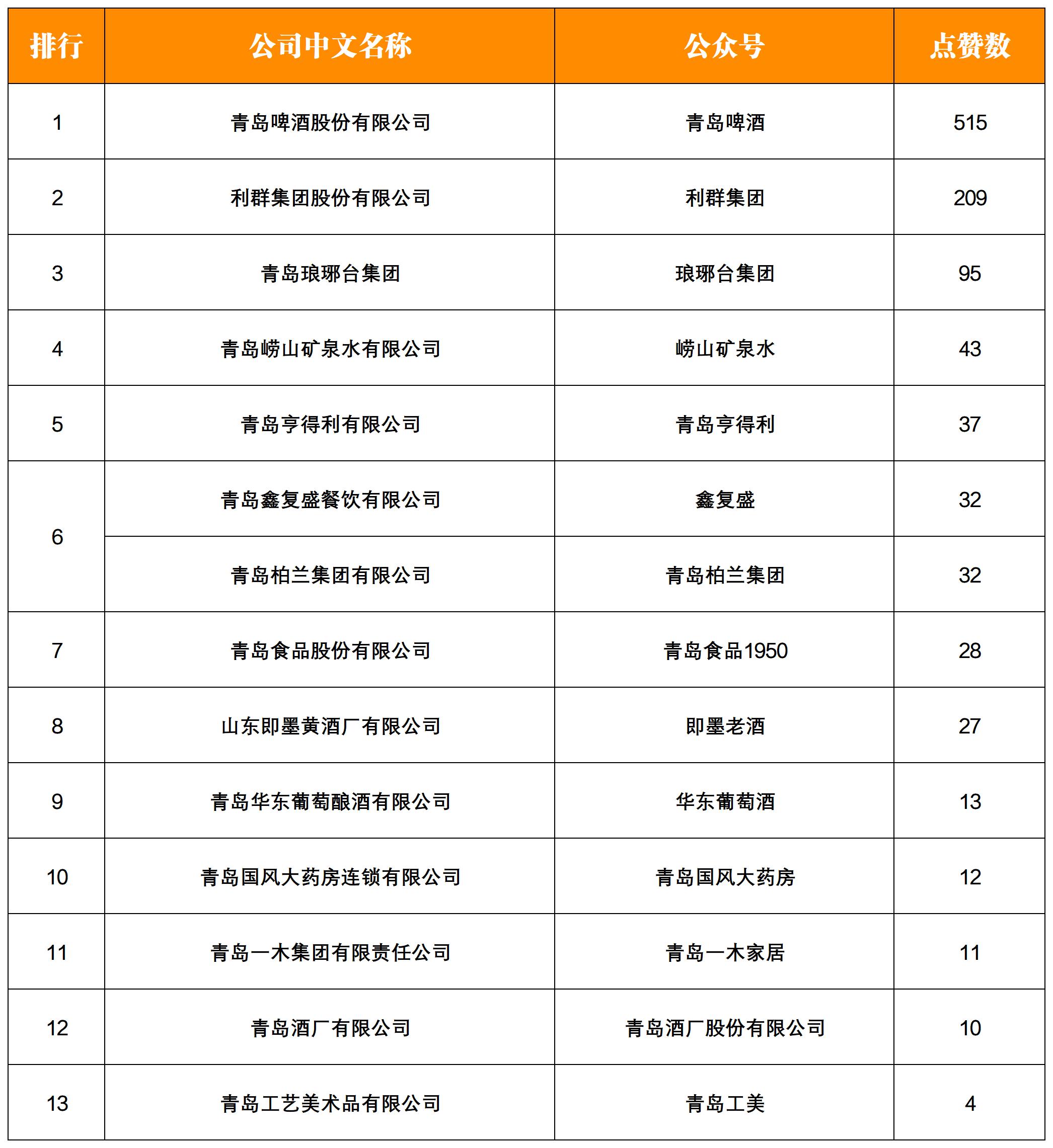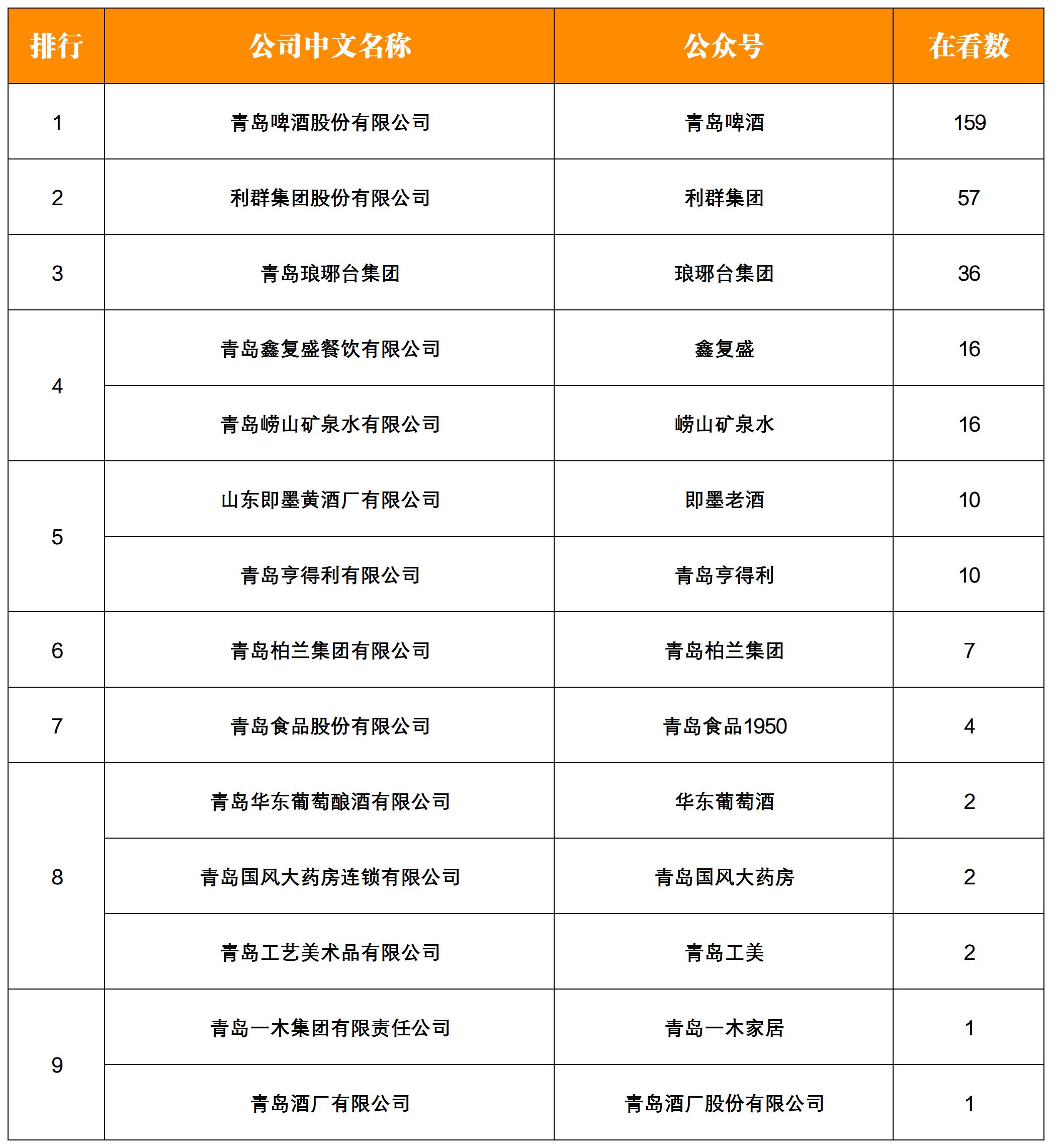 NO.10|權威發布:青島老字號企業微信影響力月度排行榜TOP15