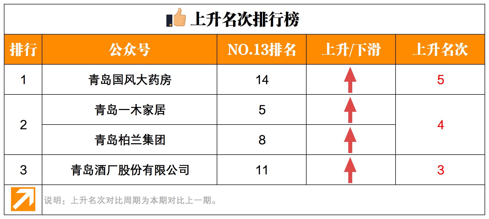 “青島酒廠股份有限公司”本期上升三名,位居總榜單第十一名、上升名次排行榜第三。