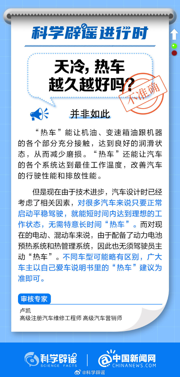 “熱車”能讓機油、變速箱油跟機器的各個部分充分接觸,達到良好的潤滑狀態,從而減少磨損?!盁彳嚒边€能讓汽車的各個系統達到最佳工作溫度,改善汽車的行駛性能和排放性能。但是現在由于技術進步,汽車設計時已經考慮了相關因素,對很多汽車來說只要正常啟動平穩駕駛,就能短時間內達到理想的工作狀態,無需特意長時間熱車。