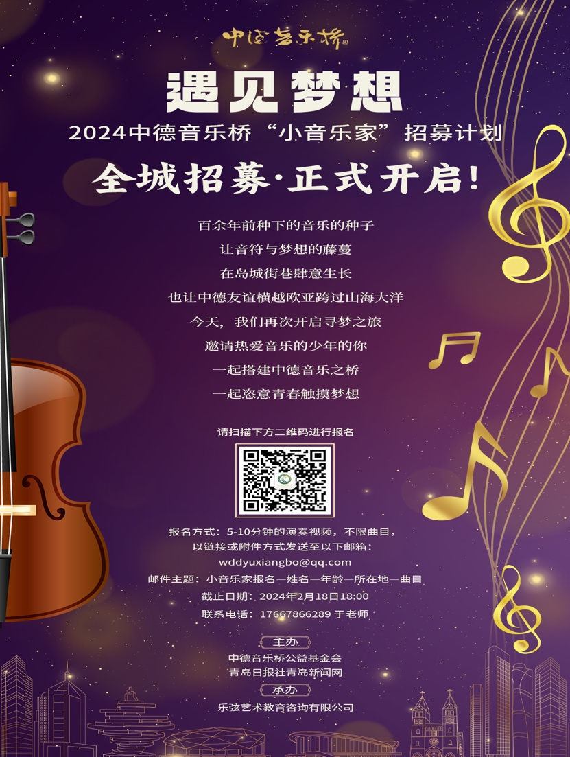 2.入選學員還將有機會參與暑期中德音樂橋“小音樂家”系列活動,與中德兩國藝術家同臺演出。
