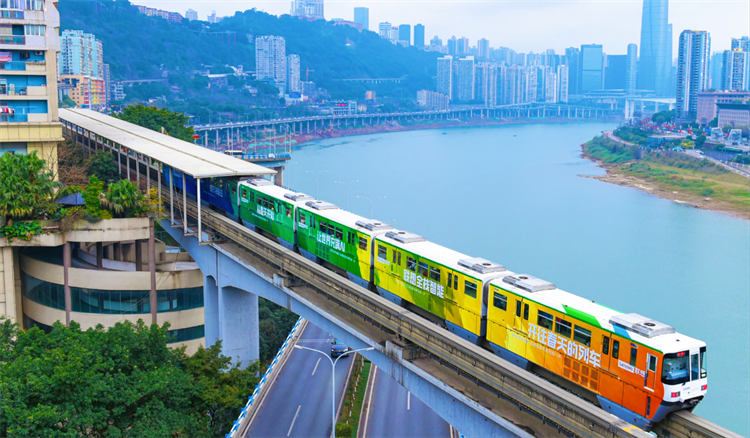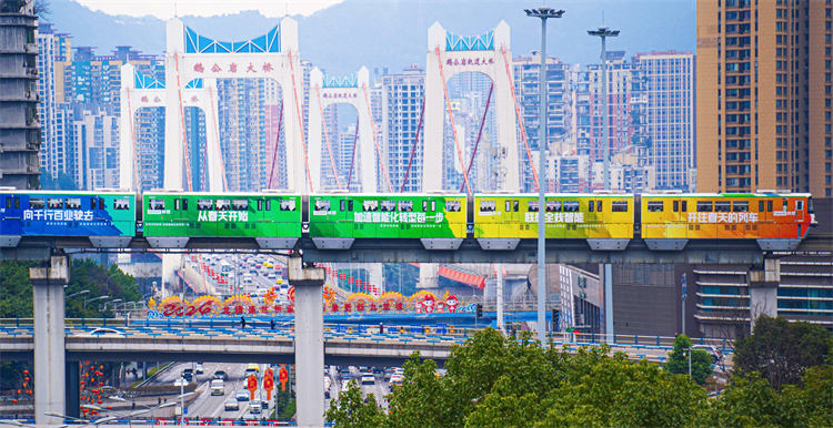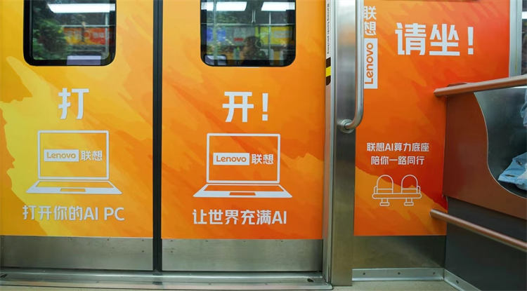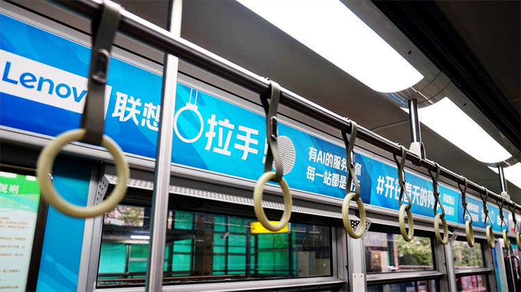 “聯想全棧智能,讓世界充滿AI,從春天開始”為主題的輕軌廣告在重慶輕軌2號線全新亮相