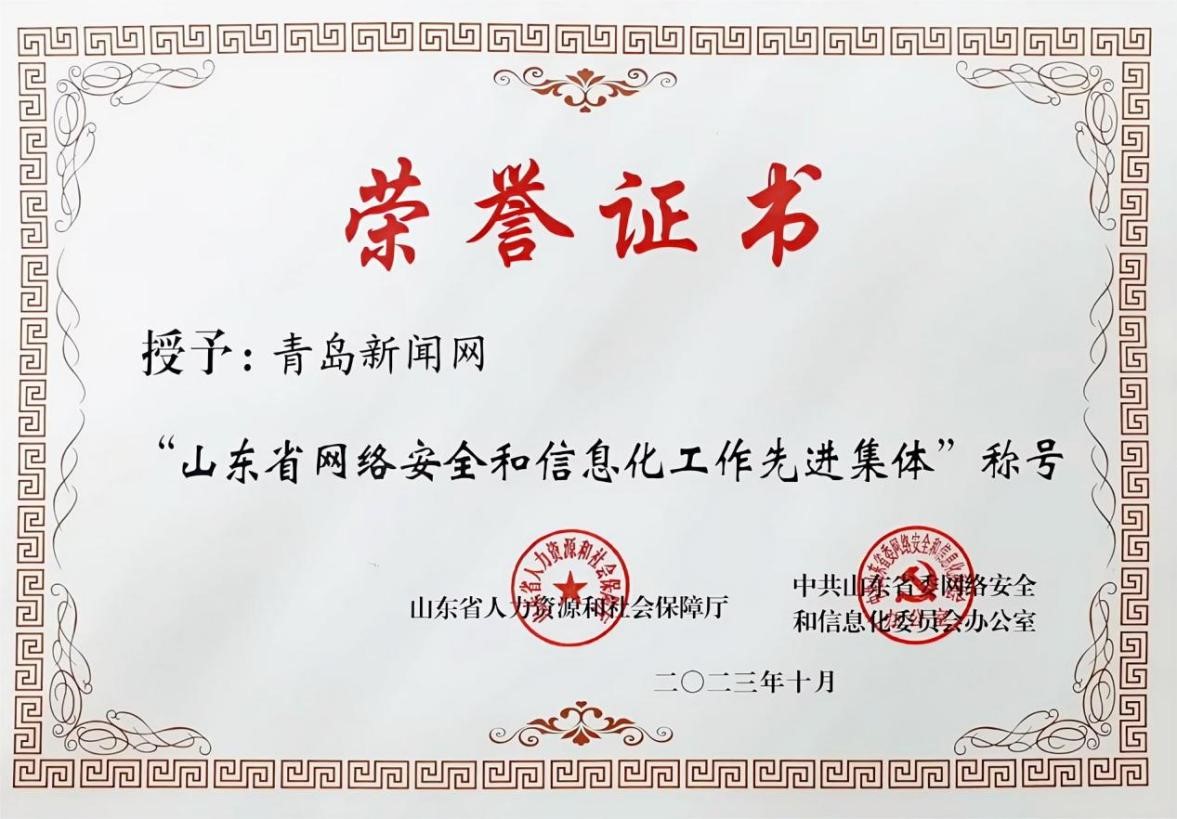 2023年10月青島新聞網(wǎng)榮獲山東省委網(wǎng)絡(luò)安全和信息化工作先進(jìn)集體。