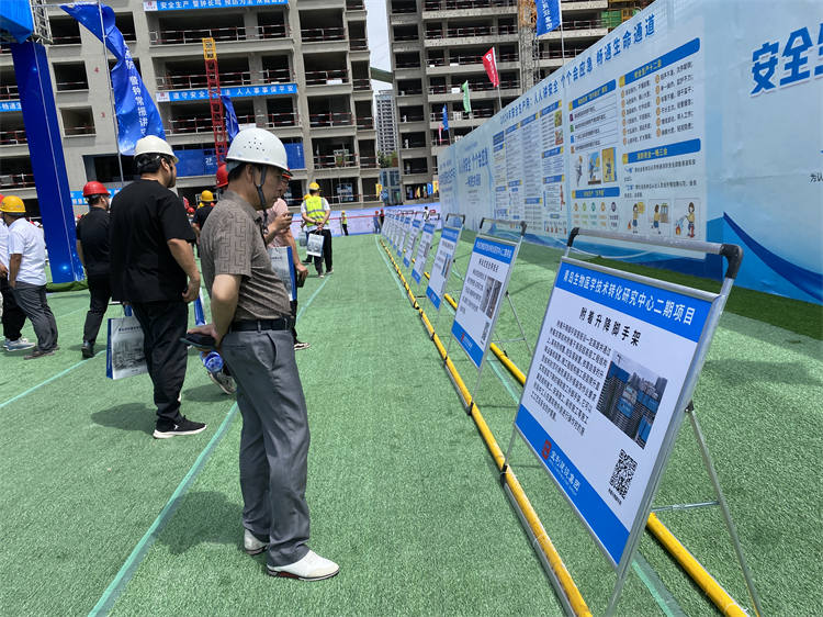 隨后,各參會企業現場觀摩唐島灣君匯項目,針對現場觀摩預防高墜實物展示的有效措施等安全管理經進行了交流學習。