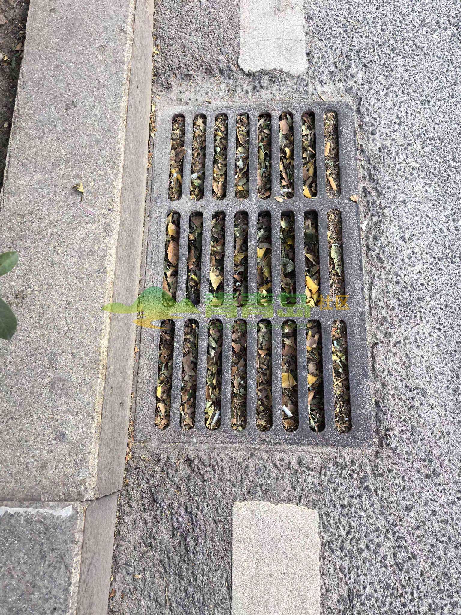 12月1日,有網民在青青島社區發帖反映:江西路35號真誠超市馬路對面的一個雨水篦子被填滿了樹葉,基本與瀝青路面一樣平,下雨起不到泄水分流作用,有安全隱患,希望相關部門關注。