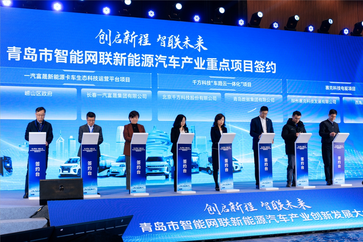 今日的青島,匯聚產(chǎn)學(xué)研“最強大腦”,擁有產(chǎn)業(yè)政策“全方位支撐”,打造營商環(huán)境“一流服務(wù)”,坐擁得天獨厚區(qū)位優(yōu)勢,正吸引一系列優(yōu)質(zhì)項目落戶。本次大會緊抓行業(yè)趨勢、深化合作對接,必將為青島智能網(wǎng)聯(lián)新能源汽車產(chǎn)業(yè)高質(zhì)量發(fā)展注入新的動能。會上,“車路云一體化”智能網(wǎng)聯(lián)(青島)應(yīng)用研究院有限公司、一汽富晟新能源卡車生態(tài)科技運營平臺、千方科技“車路云一體化”、馭勢科技港口自動駕駛項目、賽克科技電驅(qū)等優(yōu)質(zhì)項目簽約落地,智能網(wǎng)聯(lián)新能源汽車產(chǎn)業(yè)集聚能力和規(guī)模效應(yīng)持續(xù)凸顯。