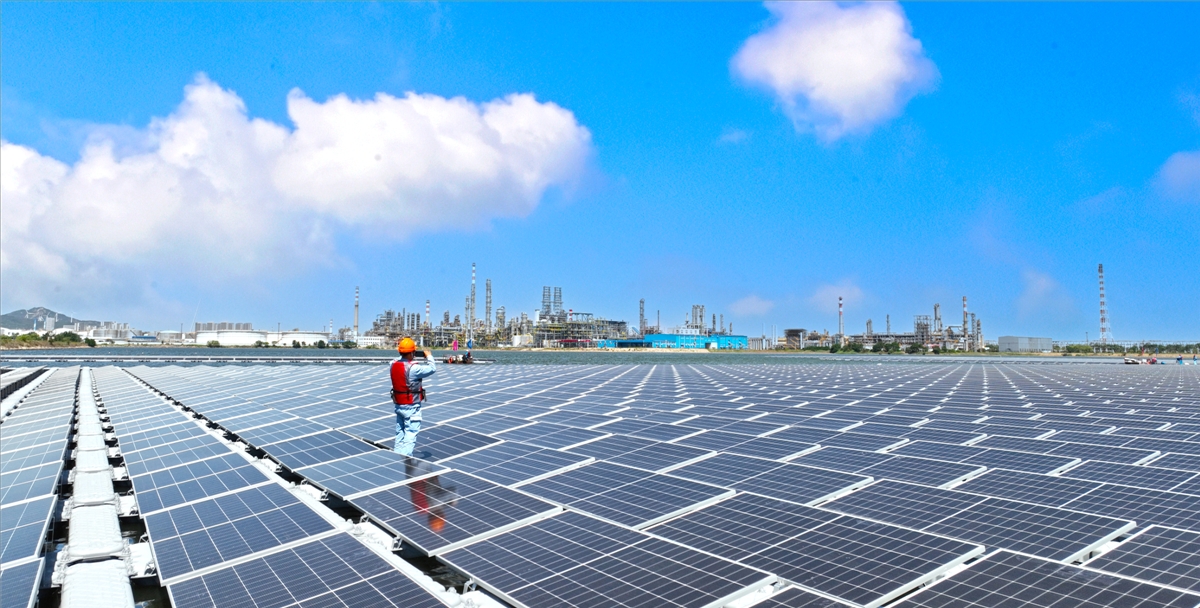青島煉化漂浮式水上光伏電站(劉強(qiáng) 拍攝)