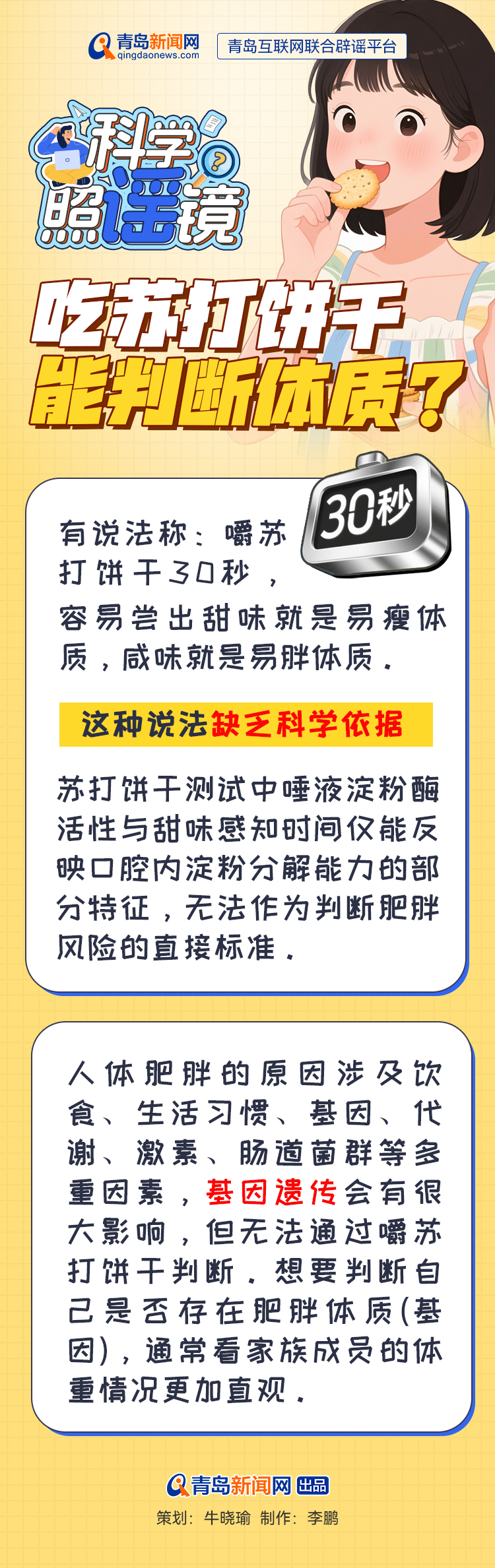 【科學照“謠”鏡】吃蘇打餅干能判斷體質?