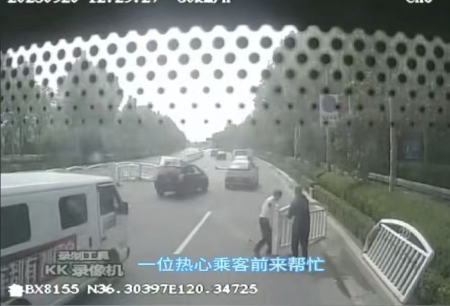 貨車突發故障阻礙交通,城陽巴士駕駛員和乘客協力清障