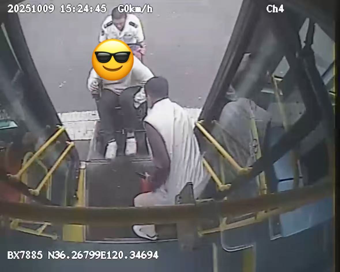 驚險!城陽巴士司機乘客齊出手,化解古力蓋“路障”危機
