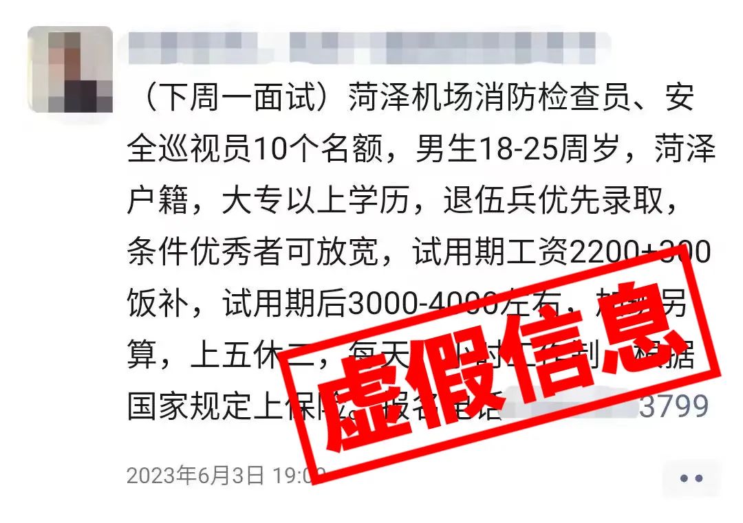 菏澤機場:關于澄清虛假招聘信息的聲明